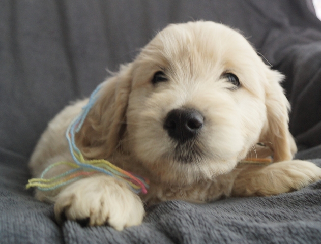 Warum ein Doodle ?? Gerade diese Mischung/Mix vom Golden Retriever und dem Pudel macht das berühmte Zünglein an der Waage aus und ist uns eine große Freude. Der Golden Retriever ist ein liebenswerter und lernwilliger Allrounder, der lieb und verschmust das Herz seiner Halter höher schlagen lässt, aber auch gerne einmal die Ohren auf Durchzug hält. Goldies lernen in der Regel recht schnell, sind angenehm in der Wohnung. Dieser Hund ist ein lustiger Geselle – Indoor wie Outdoor ein guter Kamerad und für viele Späße und gemeinsame Unternehmungen zu haben. Der Kleinpudel ist ein Herzilein unter den Pudelgrößen. Sehr lieb, sehr anhänglich, leicht zu erziehen, mit sonnigem Gemüt, ein Leichtgewicht und gut zu händeln, ein liebenswertes gesundes „Etwas“ auf vier Beinen, ein Hundchen – treuer man ihn sich kaum wünschen kann. Gerade in dieser Verpaarung den ausgleichenden Charakteren und der Eignung als herziger Familienhund, erfüllen die Welpen alle unsere Hoffnungen und Wünsche in Bezug auf Ausgeglichenheit, Anhänglichkeit, einem wesensstarken Charakter. Wir wünschen uns das sich die neuen Halter mit genauso viel Herz und Enthusiasmus und Begeisterung für diesen Hybriden aus Golden Retriever und Pudel begeistern. Unsere Zuckerschnuten geben wir ausschließlich ab an Leute mit Herz und Verstand, die mit offenen Augen die Vorzüge dieses Mixes wählen und sich auch über dessen Pflege im Klaren sind. Gerne informieren wir Sie über Haltung, Fütterung und Fellpflege. Kleine Anmerkung von uns: Wir werben nicht mit „Allergiker freundlich“ oder „nicht haarend“ oder „Therapiehund geeignet“. Wie wir alle mittlerweile wissen spielen hier viele Faktoren eine tragende Rolle und nicht jeder Hund ist eben für jeden „Job“ geeignet. Hier wenden Sie sich bitte an Züchterkollegen die ausdrücklich damit werben.